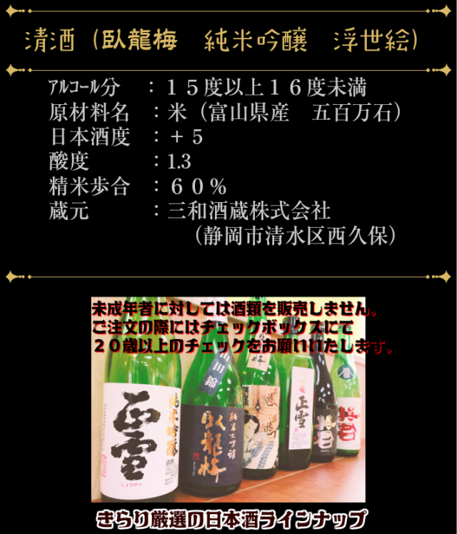 清水の日本酒 臥龍梅 純米吟醸 浮世絵